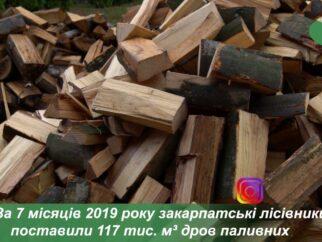 За 7 місяців 2019 року закарпатські лісівники поставили 117 тис. м³ дров паливних