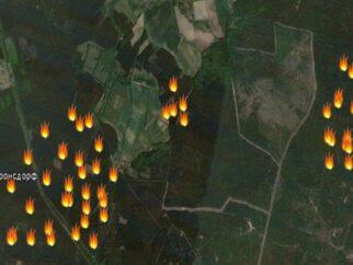 Крупный пожар в лесном массиве юго-западнее Бранденбурга… где-то в 40 км от Потсдама и 60…